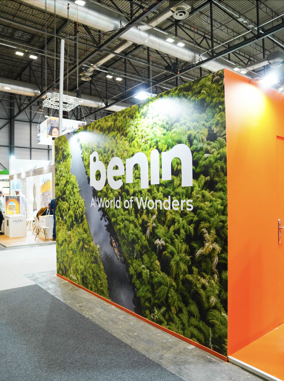 The pavilion needed to function as a professional meeting hub, a destination showcase, and an immersive entry point into Benin’s cultural, historical, and tourism offer, addressing both trade professionals and media audiences.