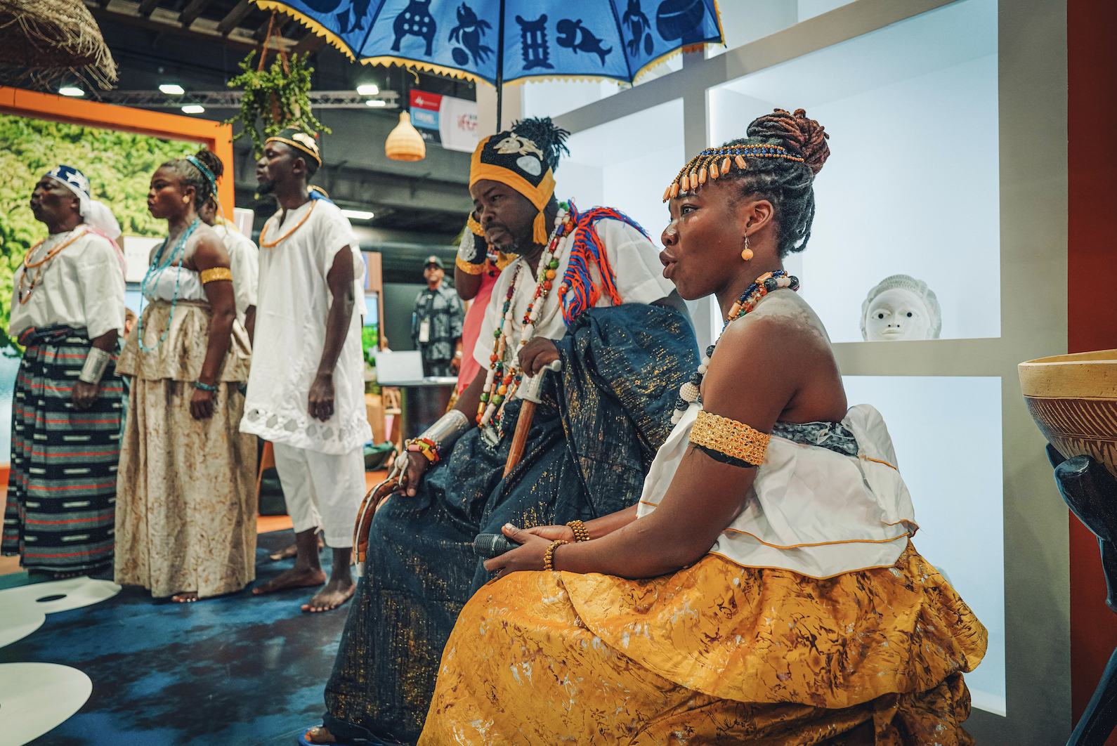 The pavilion needed to function simultaneously as a meeting point for professionals, a showcase of Benin’s tourism offer, and a cultural gateway inviting discovery, dialogue, and engagement.
